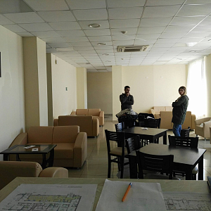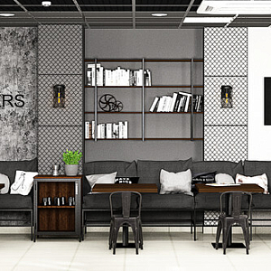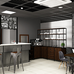 Интерьер офиса cветовыми линиями в стиле лофт, проект «Бургерная в стиле лофт» №12