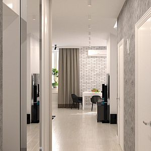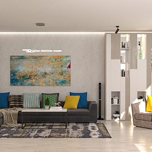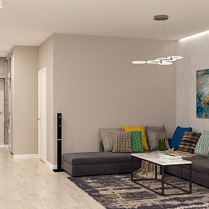 Интерьер гостиной cветовыми линиями, рейками с подсветкой, подсветкой настенной и подсветкой светодиодной в современном стиле, проект «Частный дом в стиле минимализм» №13