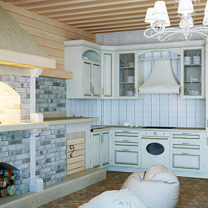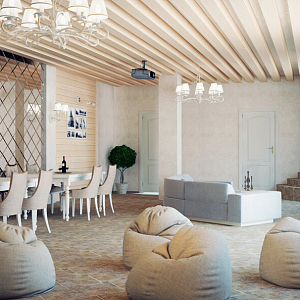 Интерьер с в деревянном доме и сауной в стиле кантри и рустике, проект «Терраса» №1