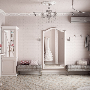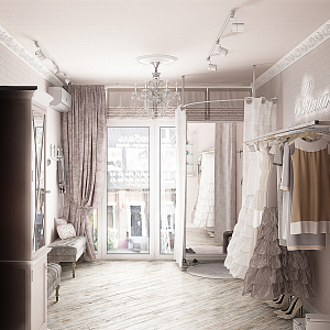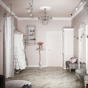 Интерьер ванной в стиле лофт и стиле шебби-шик, проект «Шоурум свадебных платьев» №2