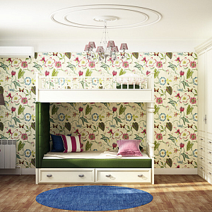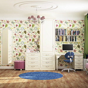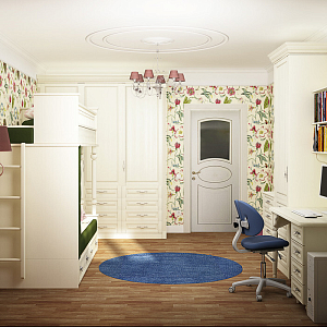 Интерьер детской c рабочим местом и с детской в классическом стиле, проект «Детская комната для девочки в классическом стиле» №3