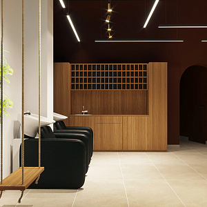 Интерьер кухни с ресепшном в современном стиле, проект «Бьюти кофейня в Краснодаре» №4