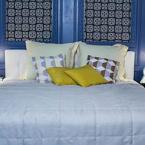 Спальня в синих тонах для программы "Фазенда" Первый Канал