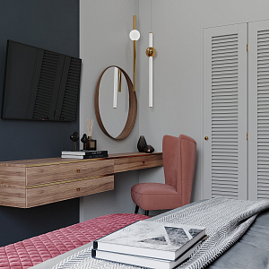 Интерьер спальни в стиле фьюжн, проект «Спальня в таунхаусе» №3