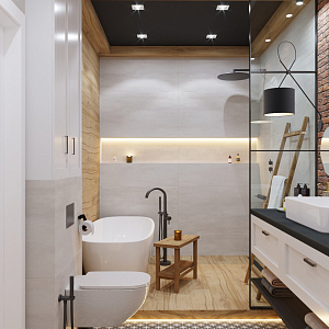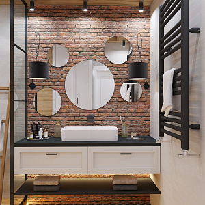 Интерьер ванной cауной в стиле лофт и в стиле фьюжн, проект «Санузел в таунхаусе» №4