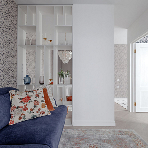 Интерьер прихожей с шкафами вокруг двери в средиземноморском, проект «62м2 Ясный Берег» №29