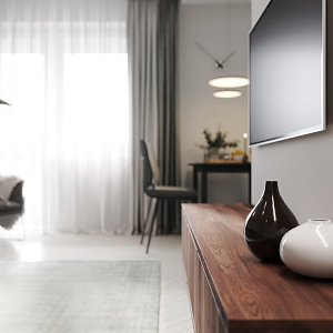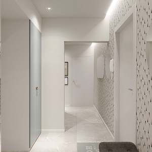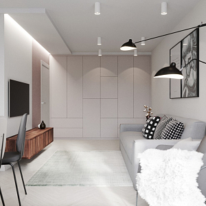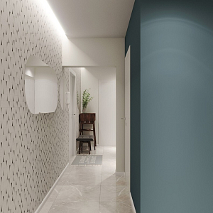 Интерьер гостиной с керамогранитом на стену с телевизором, нишей с подсветкой, панно за телевизором, подсветкой настенной, подсветкой светодиодной, порогом, рейками с подсветкой, с подсветкой, световыми линиями, стеной с телевизором и телевизором на рейка №13