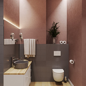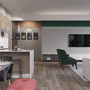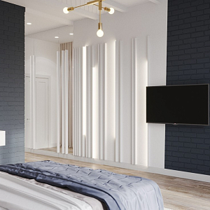 Интерьер гостиной с керамогранитом на стену с телевизором, нишей для телевизора, панно за телевизором, подсветкой настенной, подсветкой светодиодной, рейками с подсветкой, с подсветкой, световыми линиями, стеной с телевизором, телевизором на рейках и теле №6