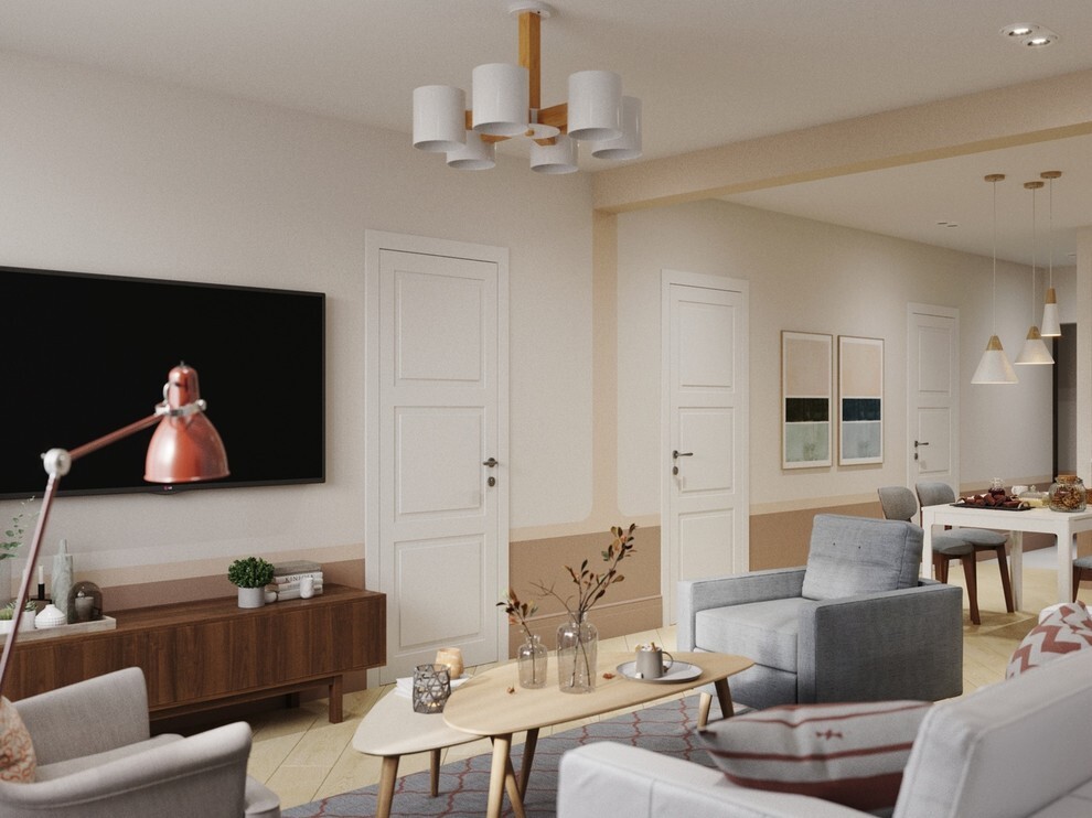 Интерьер гостиной в ретро, проект «70м2 Сахалин» №34