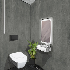 Интерьер ванной cветовыми линиями, рейками с подсветкой, подсветкой настенной и подсветкой светодиодной в стиле лофт, проект «Душевая в бетоне» №1