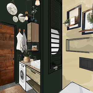 Интерьер ванной в стиле лофт, проект «Зеленый санузел» №1