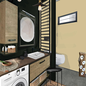 Интерьер с постирочной в стиле лофт, проект «Зеленый санузел» №2
