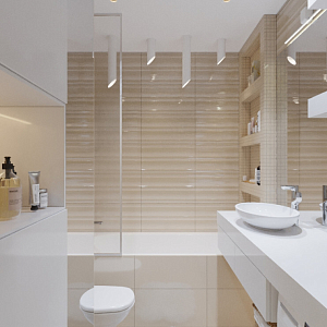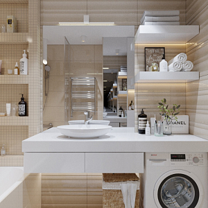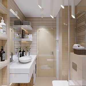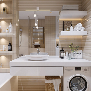 Интерьер ванной в современном стиле и в стиле лофт, проект «Женский санузел» №1