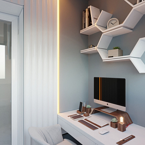 Интерьер c рабочим местом и балконом в современном стиле, проект «Современный кабинет» №1