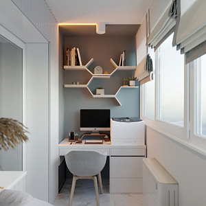 Интерьер c рабочим местом, световыми линиями, рейками с подсветкой, подсветкой настенной, подсветкой светодиодной, подсветкой рабочей зоны и с подсветкой в современном стиле, проект «Современный кабинет» №3