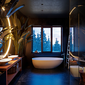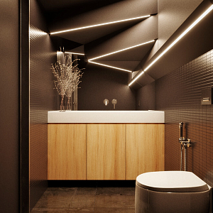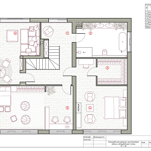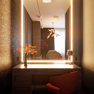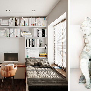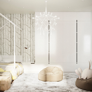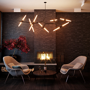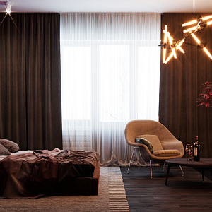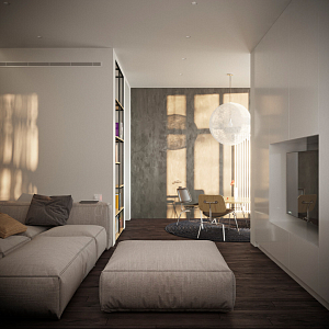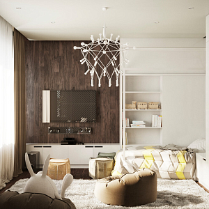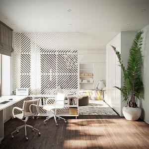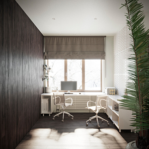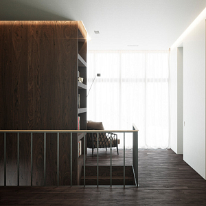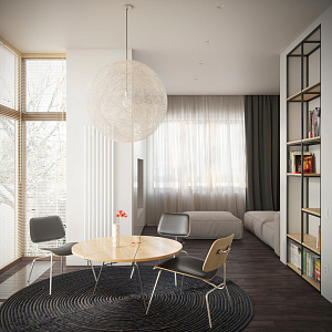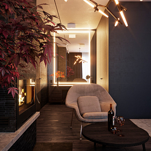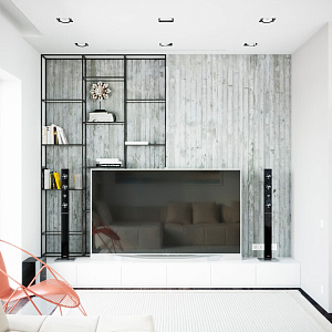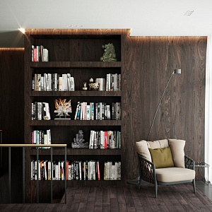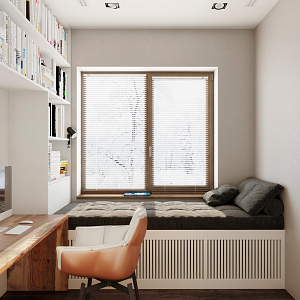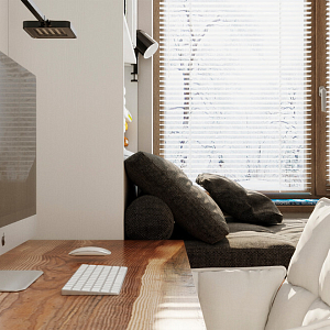 Интерьер с в деревянном доме, зонированием, зонированием рейками, перегородкой и с рабочим местом в стиле лофт, в современном стиле и эко, проект ««A Wild Sheep Chase»» №25