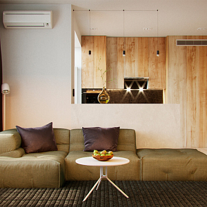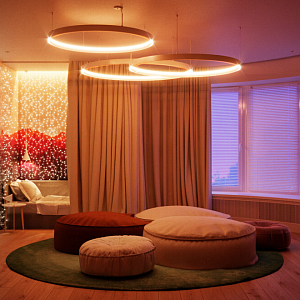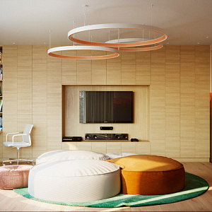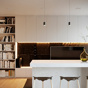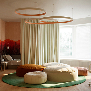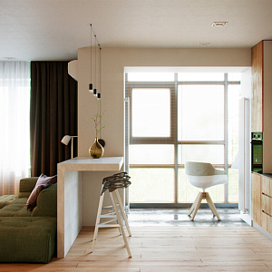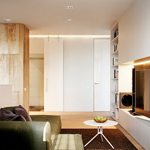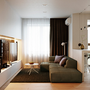 Интерьер с перегородкой, зонированием, без дверей, проходной, зонированием шторами, гостиной-прихожей, гостиной-столовой, проемом, open space, переговорной и порогом в современном стиле, проект ««White Field»» №11