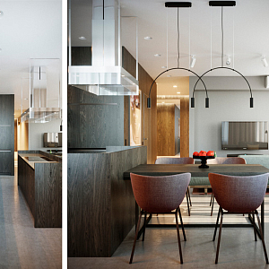 Интерьер с open space, аркой, без дверей, без окна, гостиной-прихожей, гостиной-столовой, зонированием, зонированием диваном, зонированием шторами, нишей, переговорной, перегородкой, порогом, проемом и проходной в ампире, готике и в современном стиле, про №2