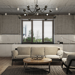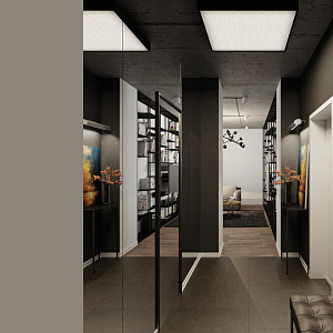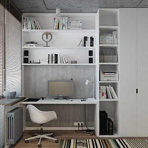 Интерьер офиса с подсветкой светодиодной и световыми линиями в стиле лофт и в современном стиле, проект «Проект интерьера квартиры «Консервный Ряд», Московская область, город Жуковский.» №4