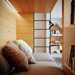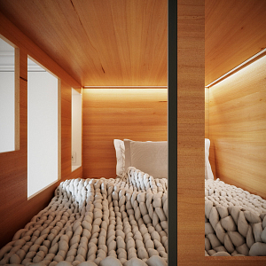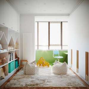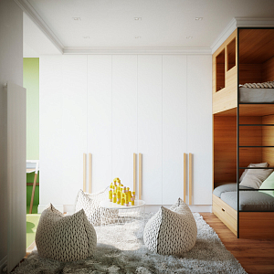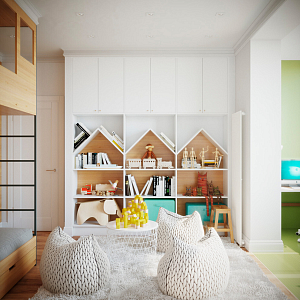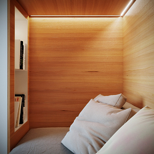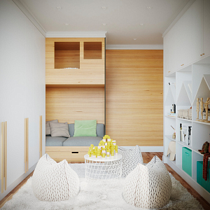 Интерьер детской с нишей с подсветкой, световыми линиями, рейками с подсветкой, подсветкой настенной, подсветкой светодиодной, светильниками над кроватью и с подсветкой в скандинавском стиле, проект ««Малышка Мю»» №28