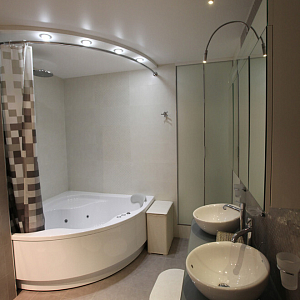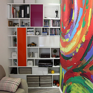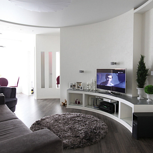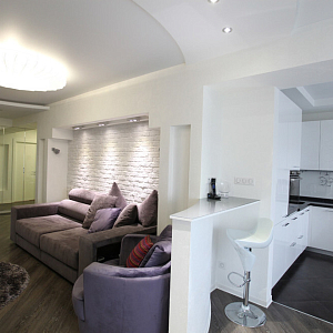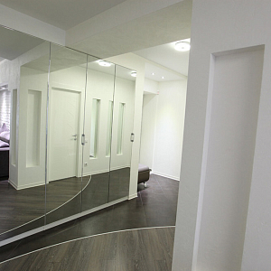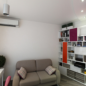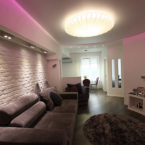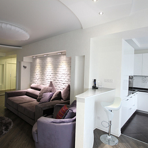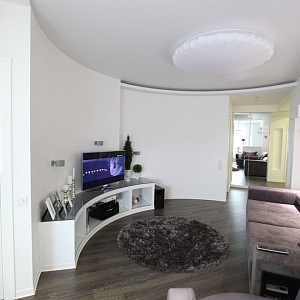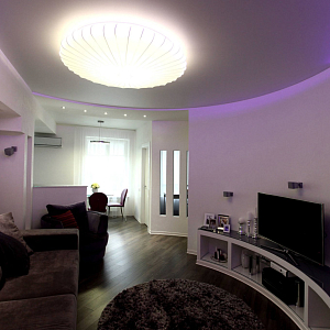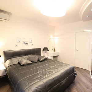 Интерьер спальни cветовыми линиями, подсветкой настенной, подсветкой светодиодной, светильниками над кроватью и с подсветкой в современном стиле, проект «Белая квартира» №13
