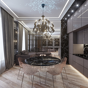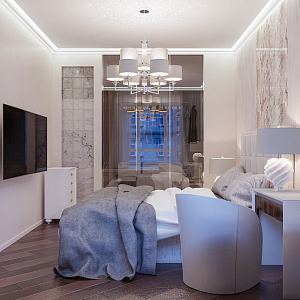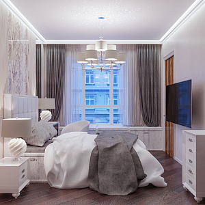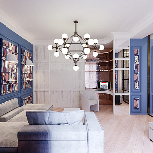 Интерьер гостиной с подсветкой настенной, подсветкой светодиодной, с подсветкой, с рабочим местом и световыми линиями в модернизме, проект «Петровский пр., 5 «OSTROV» » №13