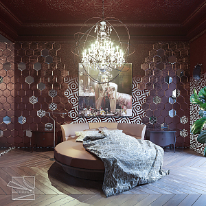 Интерьер в восточном стиле, готике и эклектике, проект «Спальня в темных тонах» №3