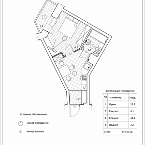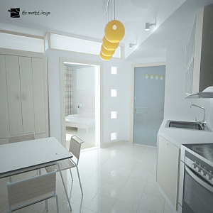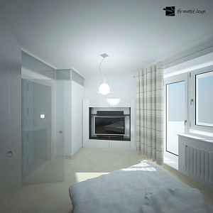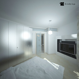 Интерьер спальни cветовыми линиями, подсветкой настенной, подсветкой светодиодной, светильниками над кроватью и с подсветкой в современном стиле, проект «Ул. Беринга. Квартира 34м²» №9