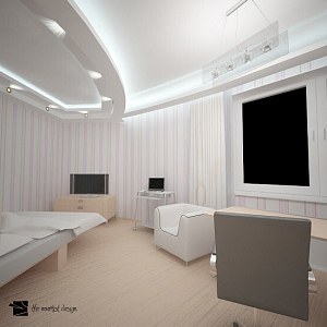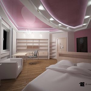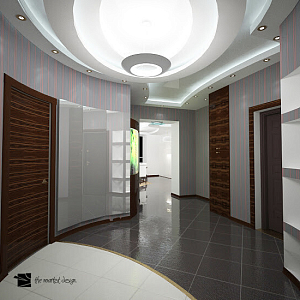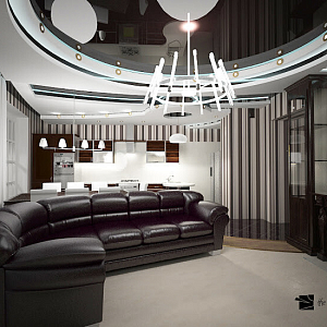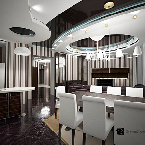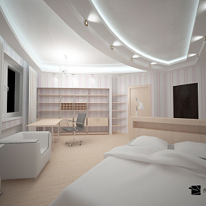 Интерьер c рабочим местом, световыми линиями, рейками с подсветкой, подсветкой настенной, подсветкой светодиодной и с подсветкой в модернизме, проект «Ул. Беринга. Квартира 163м²» №13