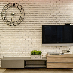 Интерьер гостиной с подсветкой настенной, подсветкой светодиодной, рейками с подсветкой, с подсветкой и световыми линиями в современном стиле, проект «Как по линейке» №12