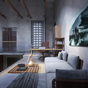 Интерьер гостиной cветовыми линиями, подсветкой настенной, подсветкой светодиодной и подсветкой рабочей зоны в современном стиле и в стиле лофт, проект «Пентхаус в Сколково» №30