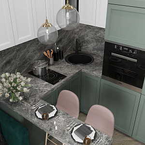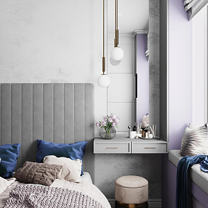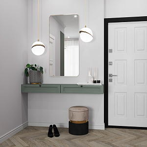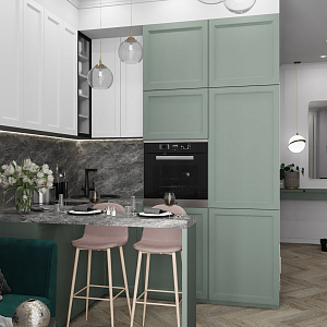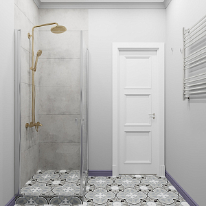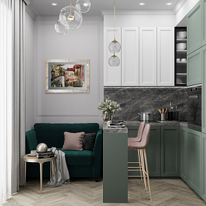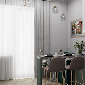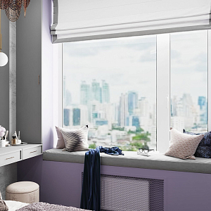Интерьер балкона с жалюзи, пластиковыми окнами и дверными жалюзи в неоклассике, проект «Современная классика в Царицыно» №4