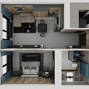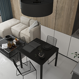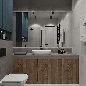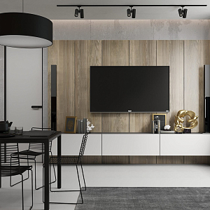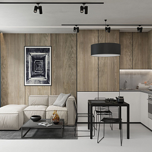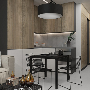 Интерьер кухни с подсветкой настенной, подсветкой рабочей зоны, подсветкой светодиодной, рейками с подсветкой, с подсветкой и световыми линиями в стиле лофт и в современном стиле, проект «Саларьево Парк, квартира 40 кв. м» №8
