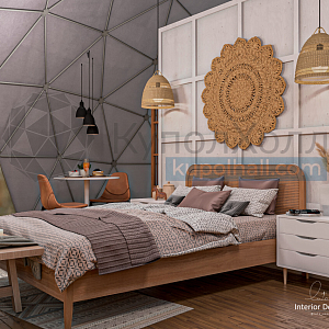 Интерьер спальни в стиле лофт, в восточном стиле и эко, проект «Купольный глэмпинг» №7