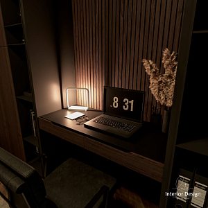 Интерьер с нишей с подсветкой, световыми линиями, рейками с подсветкой, подсветкой настенной, подсветкой светодиодной, светильниками над кроватью и с подсветкой в неоклассике, проект «Квартира г.Москва, ЖК Скандинавия» №7