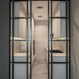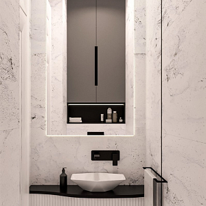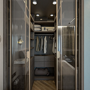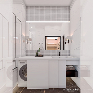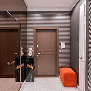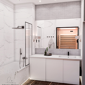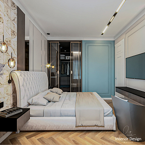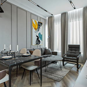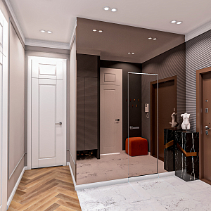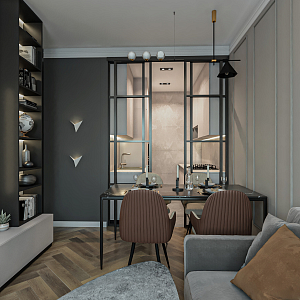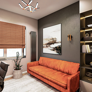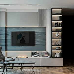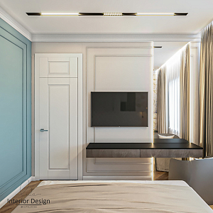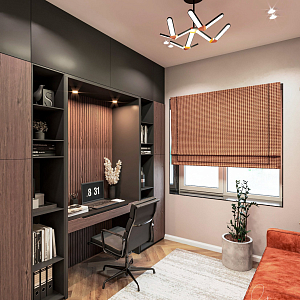 Интерьер c рабочим местом, подсветкой настенной, подсветкой светодиодной, подсветкой рабочей зоны и с подсветкой в неоклассике, проект «Квартира г.Москва, ЖК Скандинавия» №9
