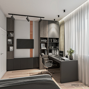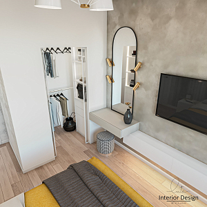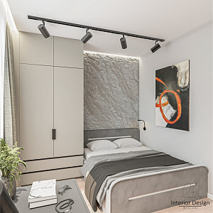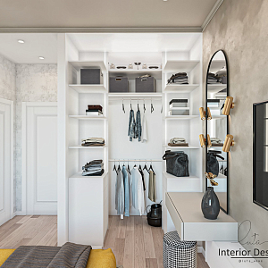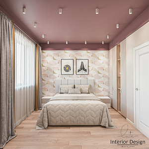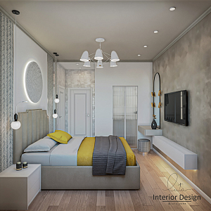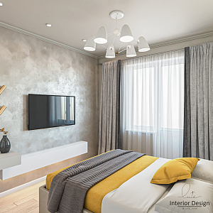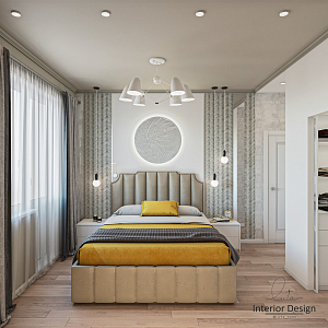 Интерьер спальни с подсветкой настенной, подсветкой светодиодной, с подсветкой, светильниками над кроватью и световыми линиями в классическом стиле, проект «Дом, г. Чайковский» №5