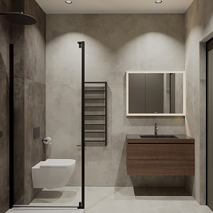 Интерьер ванной в современном стиле, проект «Дизайн проект студии 35 кв.м ЖК Утро» №9