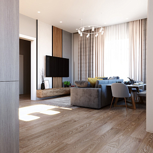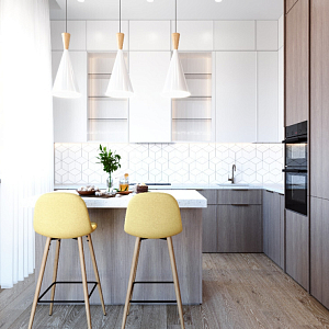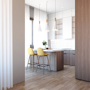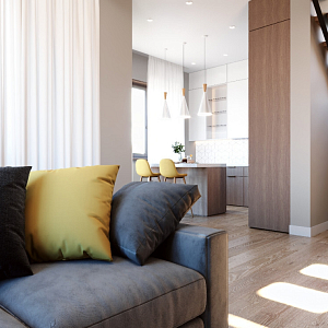 Интерьер гостиной c рабочим местом в скандинавском стиле, проект «Дизайн проект частного дома кухни- гостиной 37 кв.м» №4