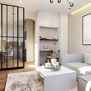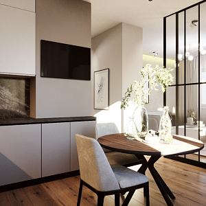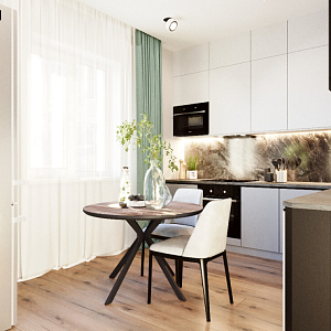 Интерьер кухни в современном стиле, проект «Проект 2-х комнатной квартиры ЖК Панорама» №1