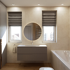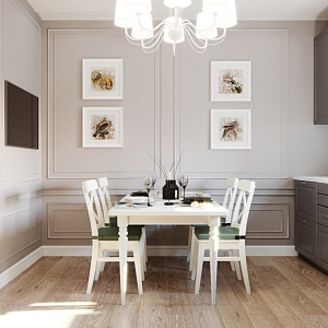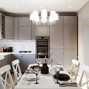 Интерьер кухни с жалюзи и дверными жалюзи, проект «Дизайн проект частного дома ЖК Романово» №12