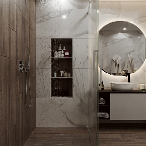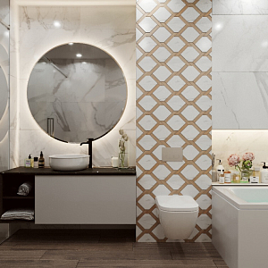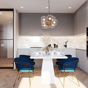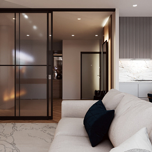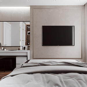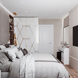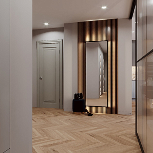 Интерьер коридора cветовыми линиями, рейками с подсветкой, подсветкой настенной, подсветкой светодиодной и с подсветкой в неоклассике, проект «Дизайн к3-х комнатной квартиры» №10