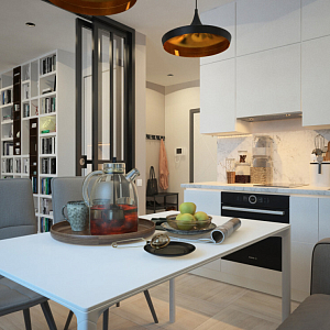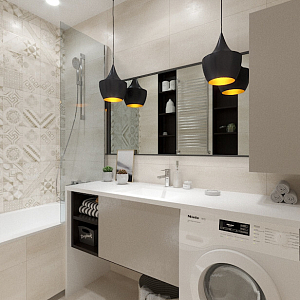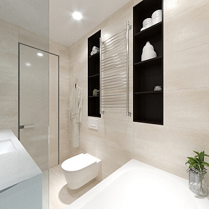 Интерьер ванной в современном стиле, проект «Дизайн проект однокомнатной квартиры 42 кв.м» №12
