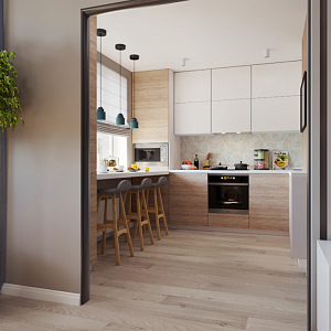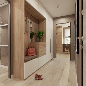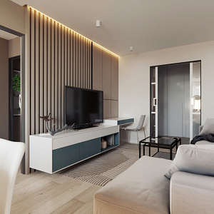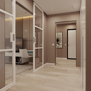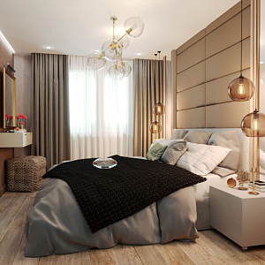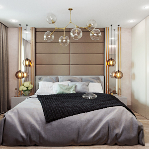 Интерьер спальни с бра над кроватью, подсветкой настенной, подсветкой светодиодной, с подсветкой, светильниками над кроватью и световыми линиями в современном стиле, проект «Дизайн проект квартиры 81 кв.м» №20