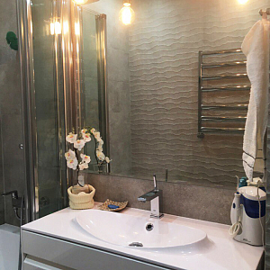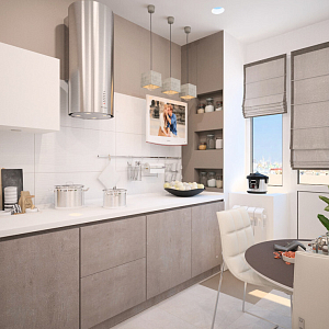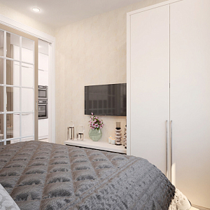 Интерьер гостиной с подсветкой настенной и подсветкой светодиодной в современном стиле, проект «Проект 2-х комнатной квартиры 53,3 кв.м г. Москва» №18
