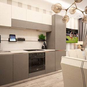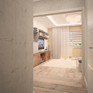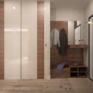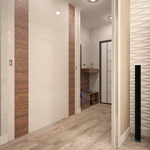 Интерьер коридора с проходной, световыми линиями, порогом, подсветкой настенной и подсветкой светодиодной в современном стиле, проект «Дизайн проект 2-х комнатной квартиры 59,6 кв.м г.Москва» №16