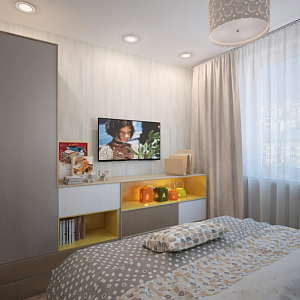 Интерьер спальни в современном стиле, проект «Проект однокомнатной квартиры г. Королев» №12