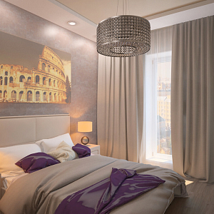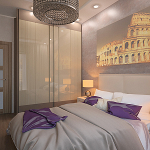 Интерьер спальни с подсветкой светодиодной и светильниками над кроватью в современном стиле, проект «Проект квартиры 78,9 кв.м г.» №9