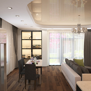 Интерьер гостиной с подсветкой настенной, подсветкой светодиодной, с подсветкой и световыми линиями в современном стиле, проект «Дизайн проект частного дома 140 кв.м г. Севастополь» №6