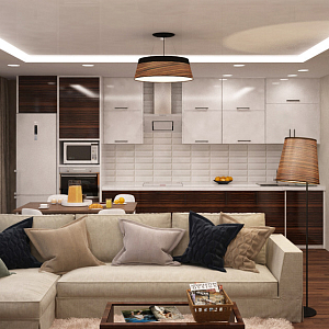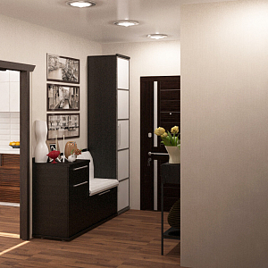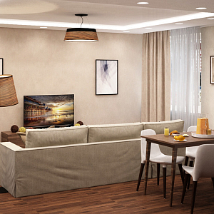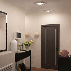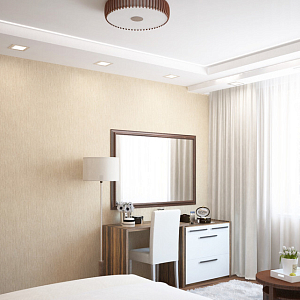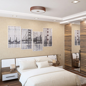 Интерьер спальни cветовыми линиями, рейками с подсветкой, подсветкой настенной, подсветкой светодиодной, светильниками над кроватью и с подсветкой в современном стиле, проект «Дизайн проект 2-х комнатной квартиры 60 кв.м г.Омск» №3